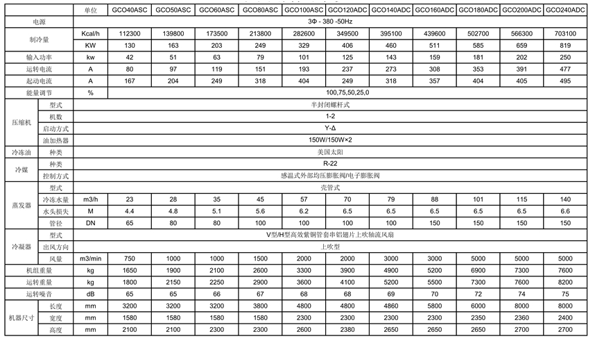 风冷螺杆式J9·九游会「中国」官方网站的技术参数: